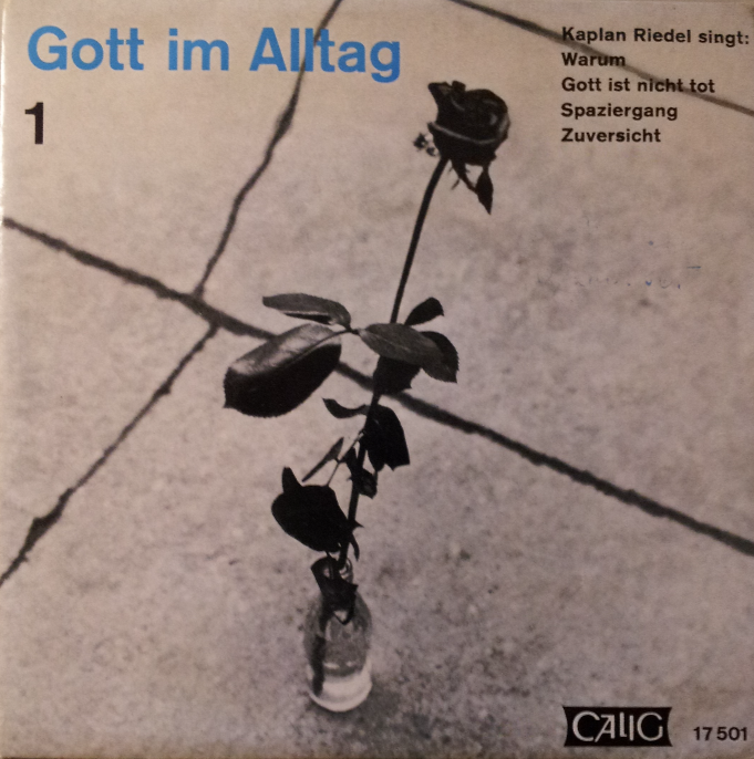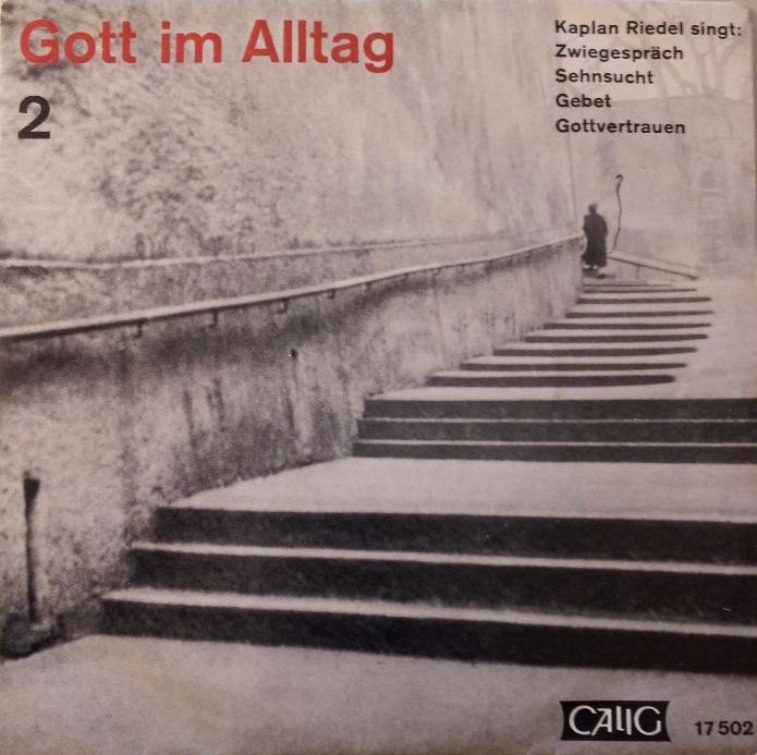 veröffentlicht: ![]() Gott im Alltag 1 – Kaplan Riedel singt: ![]() Warum Gott ist nicht tot Spaziergang Zuversicht Calig – CAL 17 501 ![]() Gott im Alltag 2 – Kaplan Riedel singt: Zwiegespräch Sehnsucht Gebet Gottvertrauen Calig – CAL 17 502 E. Haag-Combo, Stuttgart Musikalische Bearbeitung und Arrangements: Nico Martin 1964 ![]() Notenausgabe mit Text und Gitarrenbegleitung ![]() Abbé Wottké singt Kleine Menschenliebe Jugend von Heute Moderner Sklave Gebet CAL 17504 (T 74985) E. Haag-Combo, Stuttgart Arrangements: Nico Martin 1965 |